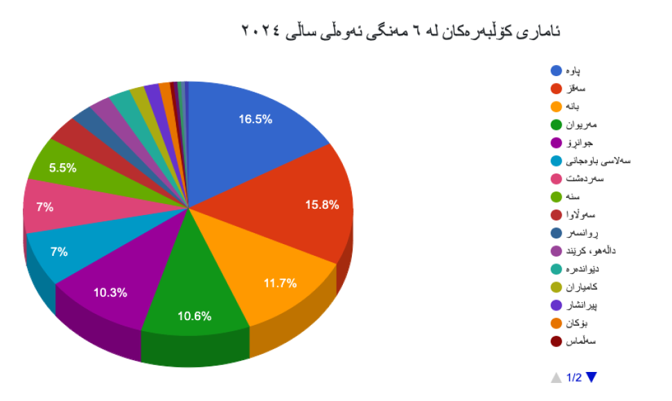 | پاوە | ٤٥ کەس | سەقز | ٤٣ کەس | بانە | ٣٢ کەس |